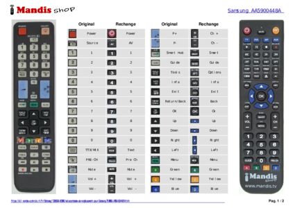 Un document est inclus pour vous aider à utiliser facilement la nouvelle télécommande, en indiquant la correspondance des boutons.