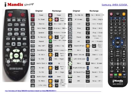 Un document est inclus pour vous aider à utiliser facilement la nouvelle télécommande, en indiquant la correspondance des boutons.