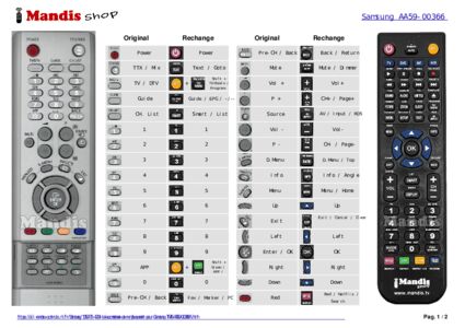 Cette télécommande remplace entièrement votre AA59-00366 et offre toutes les fonctions de l'originale.