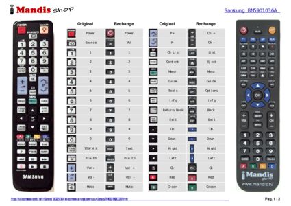 Un document est inclus pour vous aider à utiliser facilement la nouvelle télécommande, en indiquant la correspondance des boutons.