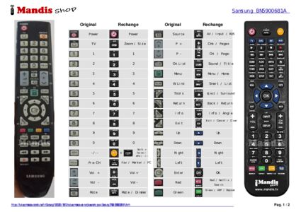Un document est inclus pour vous aider à utiliser facilement la nouvelle télécommande, en indiquant la correspondance des boutons.