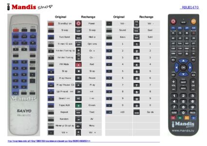 Cette télécommande remplace entièrement votre RB-UB1470 (MRC31X000XX020) et offre toutes les fonctions de l'originale.