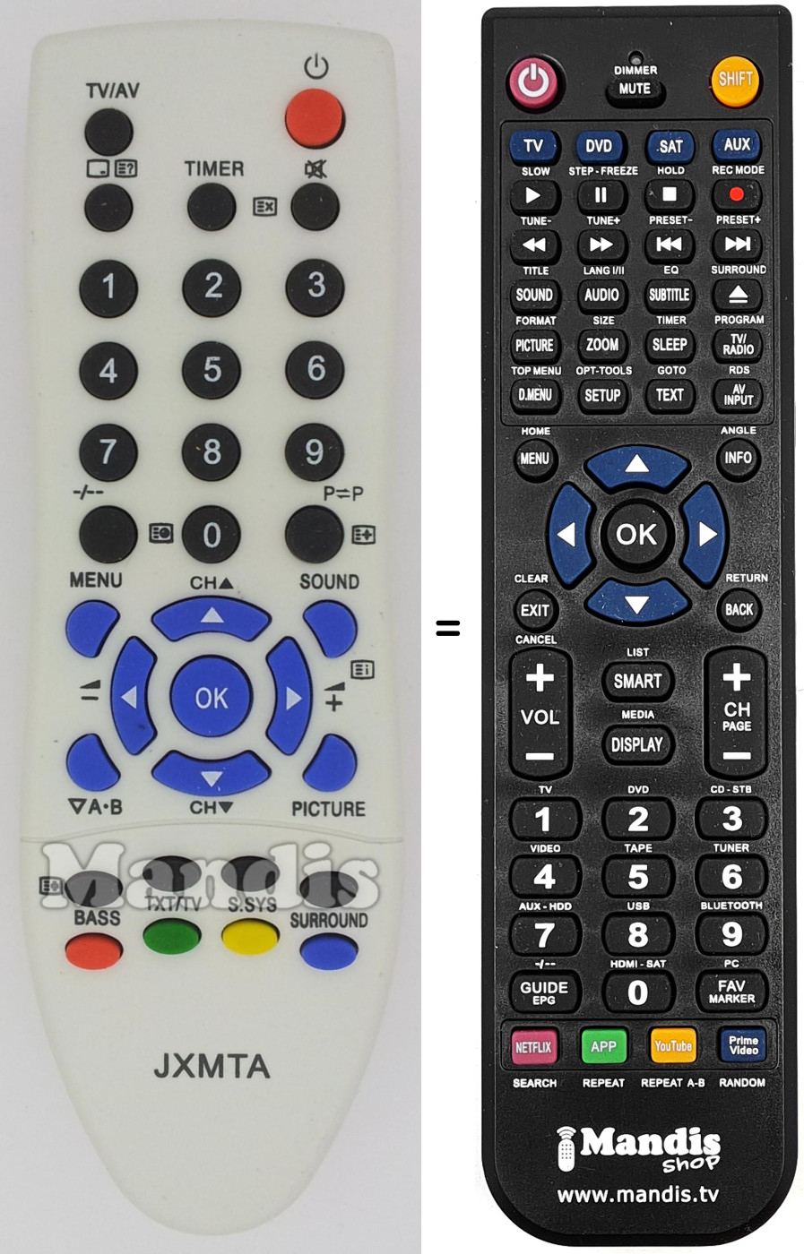 Télécommande qui remplace celle d'origine car elle possède les mêmes fonctions.