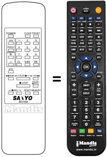 Télécommande qui remplace celle d'origine car elle possède les mêmes fonctions.