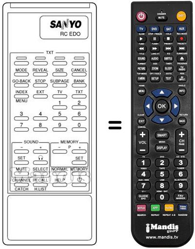 Télécommande qui remplace celle d'origine car elle possède les mêmes fonctions.