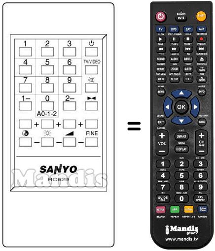 Télécommande qui remplace celle d'origine car elle possède les mêmes fonctions.