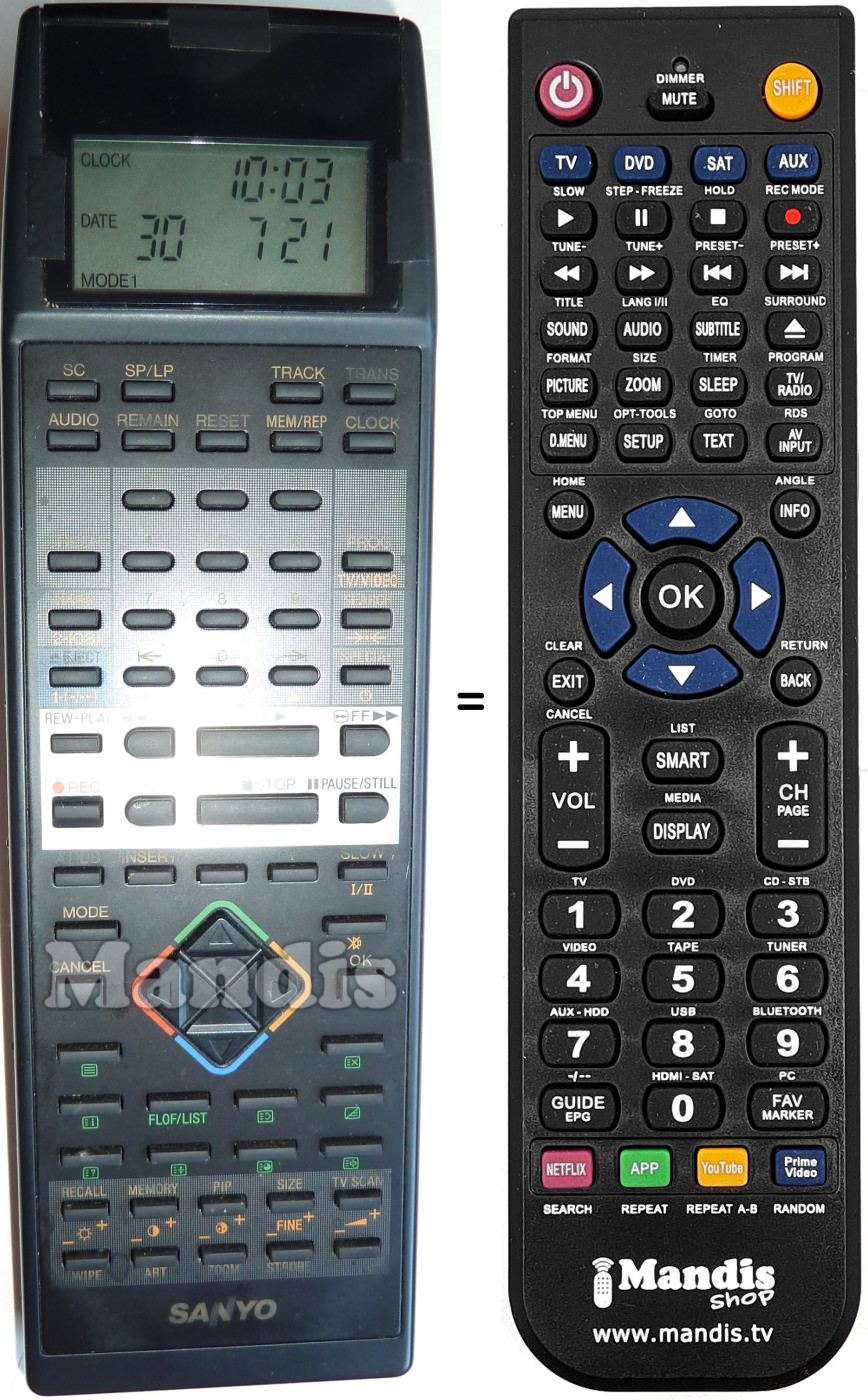 Télécommande qui remplace celle d'origine car elle possède les mêmes fonctions.