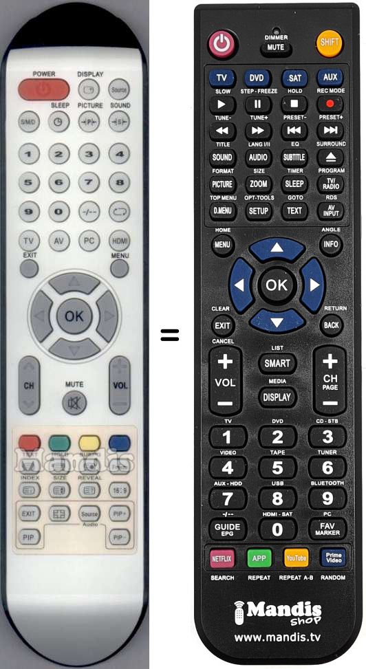 Télécommande qui remplace celle d'origine car elle possède les mêmes fonctions.