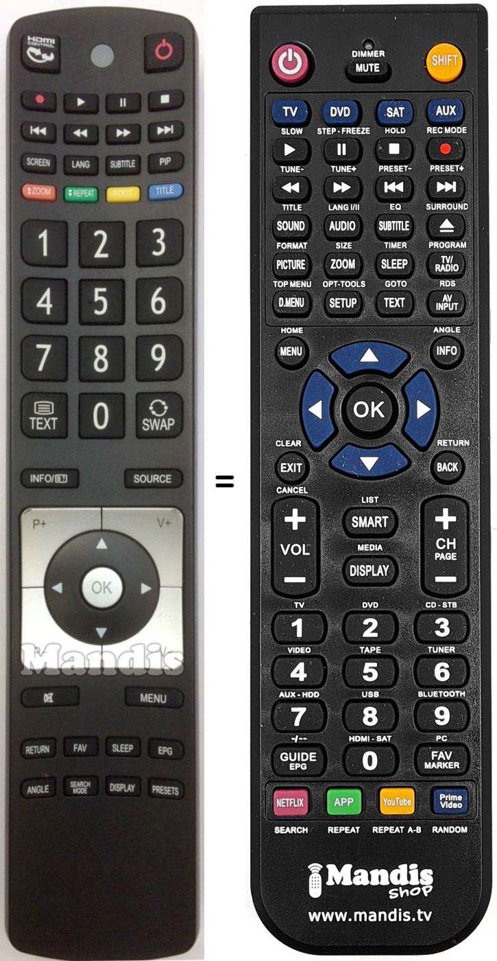Télécommande qui remplace celle d'origine car elle possède les mêmes fonctions.