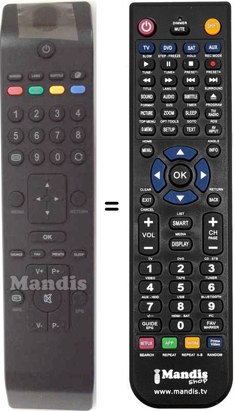 Télécommande qui remplace celle d'origine car elle possède les mêmes fonctions.