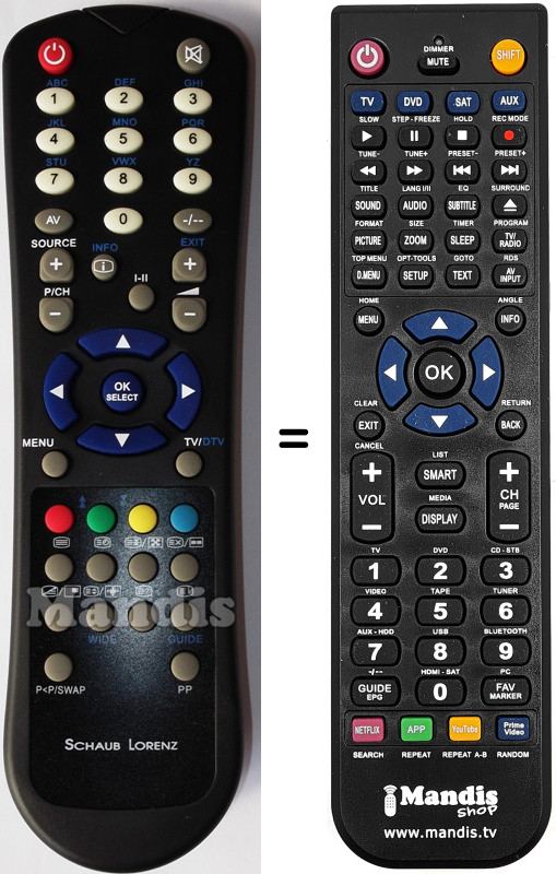 Télécommande qui remplace celle d'origine car elle possède les mêmes fonctions.