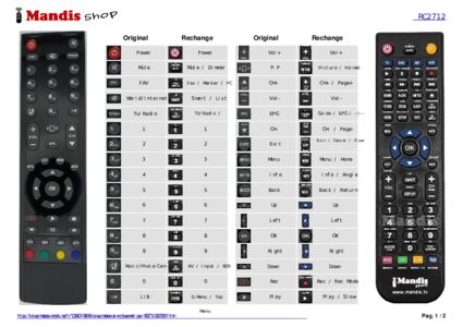 Un document est inclus pour vous aider à utiliser facilement la nouvelle télécommande, en indiquant la correspondance des boutons.