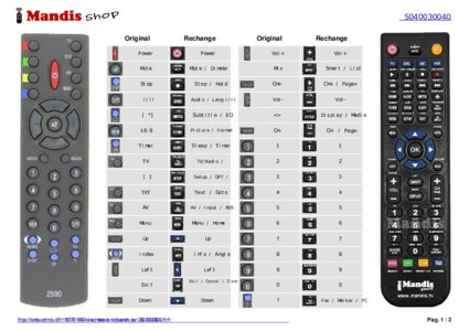 Un document est inclus pour vous aider à utiliser facilement la nouvelle télécommande, en indiquant la correspondance des boutons.
