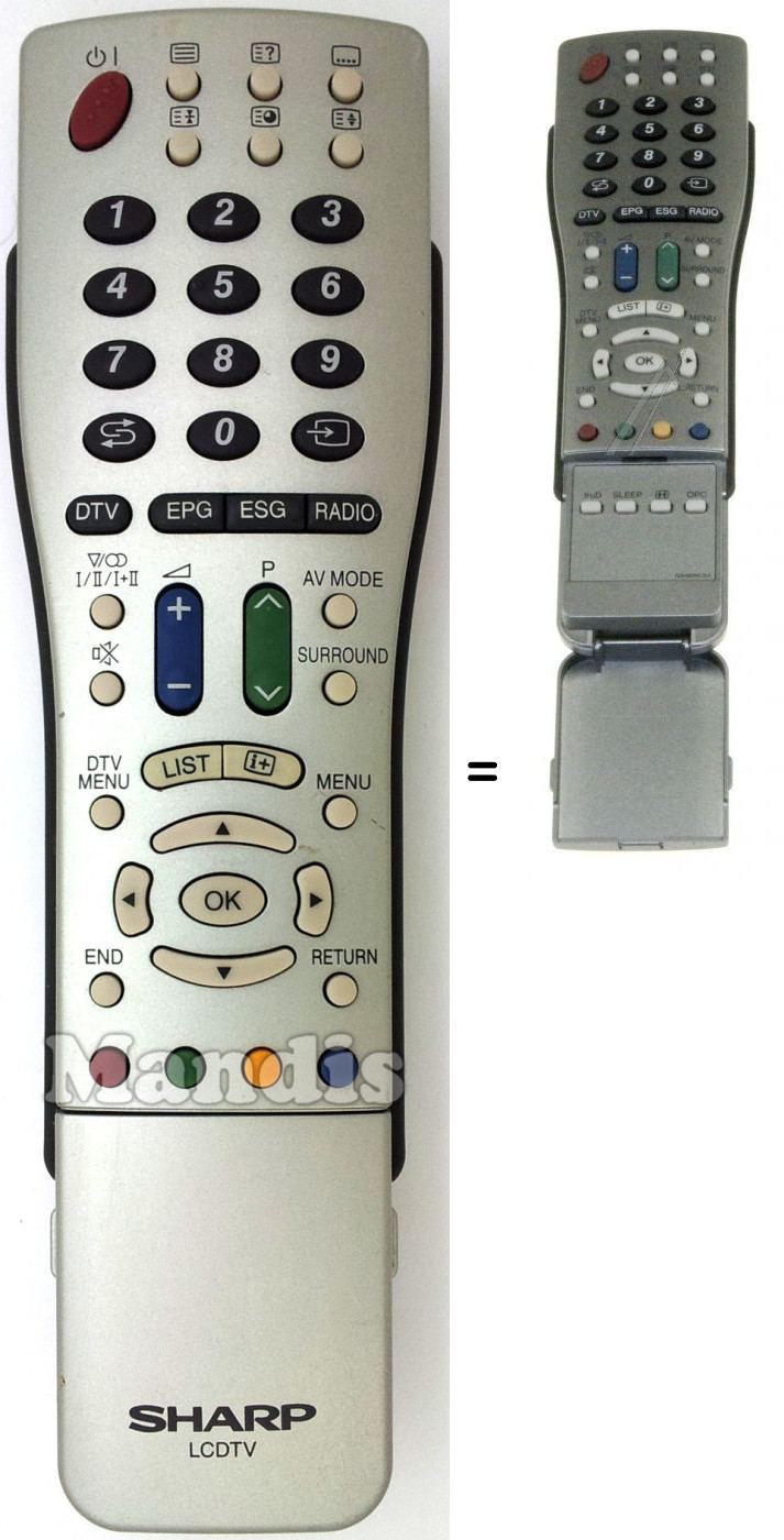 Télécommandes équivalentes qui remplacent la télécommande SHARP RRMCGA460WJSA et possèdent exactement les mêmes fonctions :