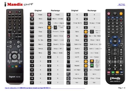 Un document est inclus pour vous aider à utiliser facilement la nouvelle télécommande, en indiquant la correspondance des boutons.