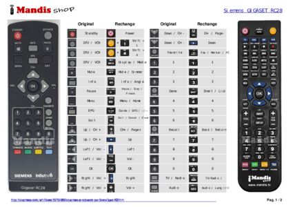 Accueil > Marques > Télécommandes Siemens > Télécommande pour Siemens Gigaset RC28