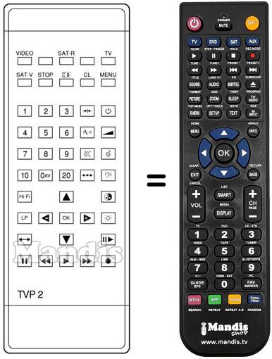 Télécommande qui remplace celle d'origine car elle possède les mêmes fonctions.