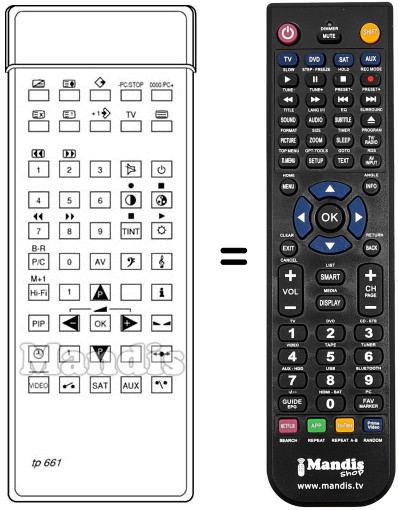 Télécommande qui remplace celle d'origine car elle possède les mêmes fonctions.