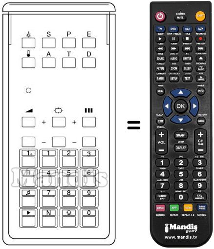 Télécommande qui remplace celle d'origine car elle possède les mêmes fonctions.