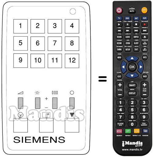 Télécommande qui remplace celle d'origine car elle possède les mêmes fonctions.