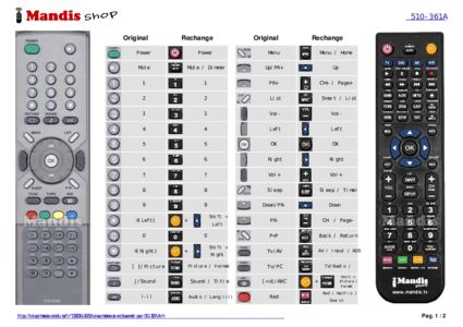 Un document est inclus pour vous aider à utiliser facilement la nouvelle télécommande, en indiquant la correspondance des boutons.