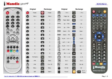 Un document est inclus pour vous aider à utiliser facilement la nouvelle télécommande, en indiquant la correspondance des boutons.