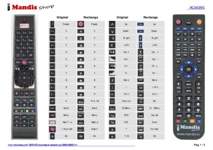 Un document est inclus pour vous aider à utiliser facilement la nouvelle télécommande, en indiquant la correspondance des boutons.