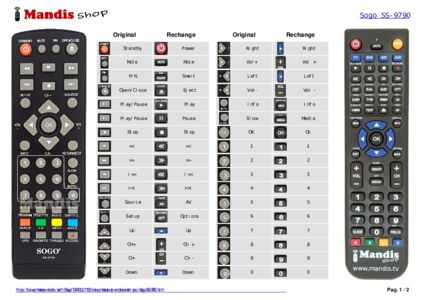 Cette télécommande remplace entièrement votre SS-9790 et offre toutes les fonctions de l'originale.