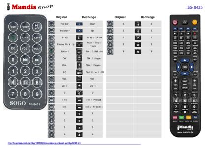 Cette télécommande remplace entièrement votre SS-8435 et offre toutes les fonctions de l'originale.