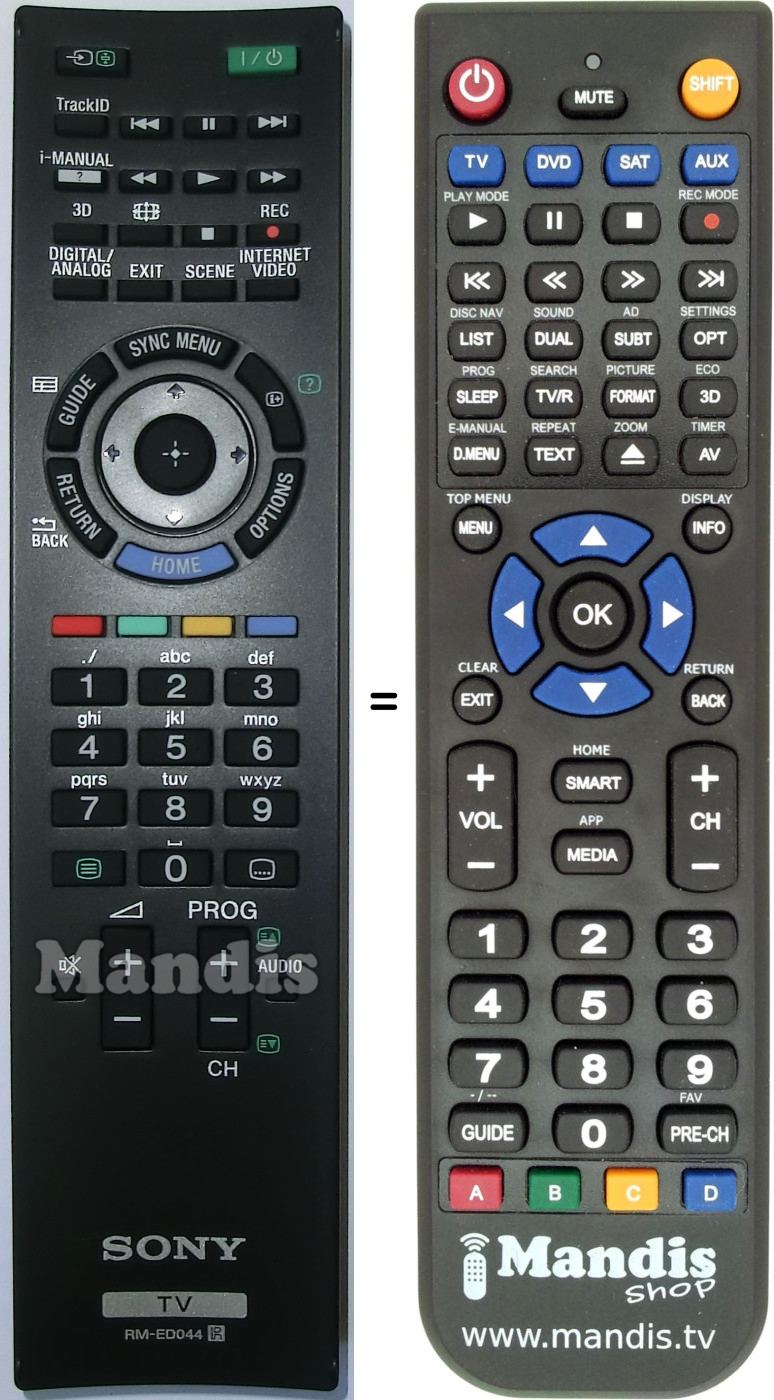 Cette télécommande remplace entièrement votre RM-ED044 (148947511) et offre toutes les fonctions de l'originale.