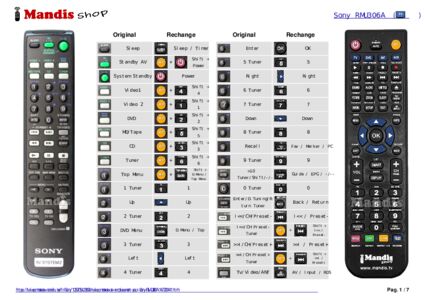 Un document est inclus pour vous aider à utiliser facilement la nouvelle télécommande, en indiquant la correspondance des boutons.