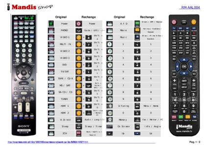 Cette télécommande remplace entièrement votre RM-AAL004 (147402711) et offre toutes les fonctions de l'originale.