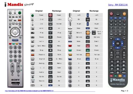 Cette télécommande remplace entièrement votre RM-ED011W (148077821) et offre toutes les fonctions de l'originale.
