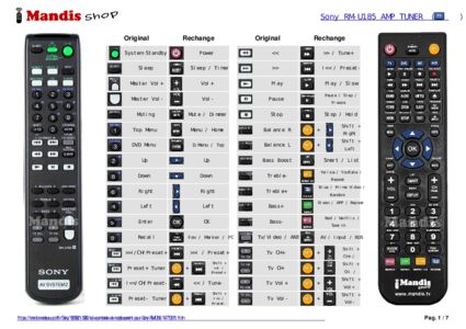 Cette télécommande remplace entièrement votre RM-U185 (147713311) et offre toutes les fonctions de l'originale.