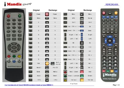 Un document est inclus pour vous aider à utiliser facilement la nouvelle télécommande, en indiquant la correspondance des boutons.