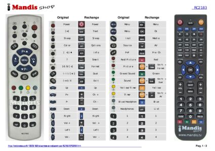 Cette télécommande remplace entièrement votre RC 2183 (313P10821831) et offre toutes les fonctions de l'originale.