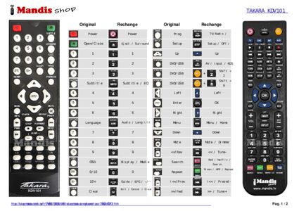 Un document est inclus pour vous aider à utiliser facilement la nouvelle télécommande, en indiquant la correspondance des boutons.