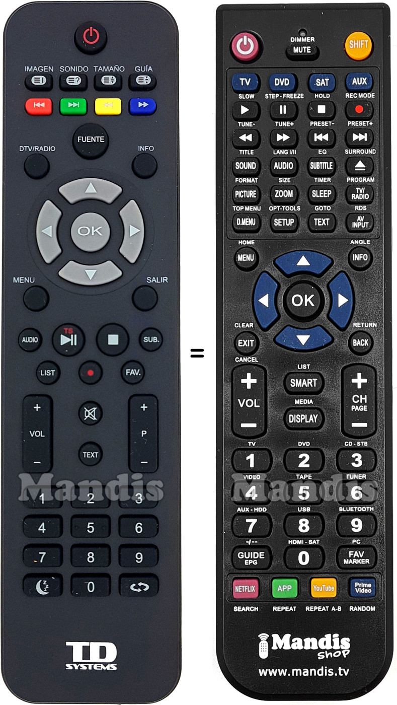 Télécommande qui remplace celle d'origine car elle possède les mêmes fonctions.