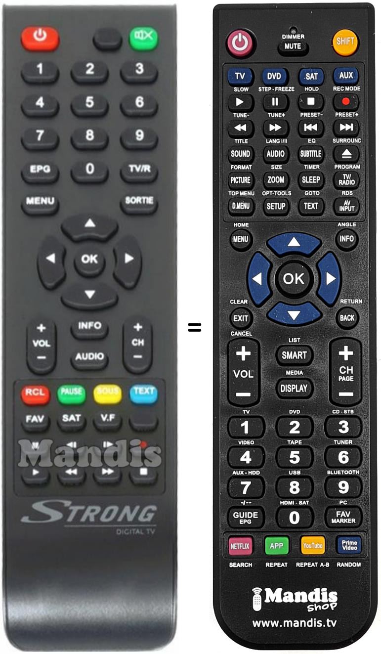 Télécommande qui remplace celle d'origine car elle possède les mêmes fonctions.