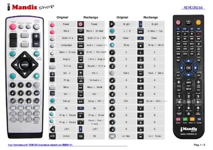 Un document est inclus pour vous aider à utiliser facilement la nouvelle télécommande, en indiquant la correspondance des boutons.