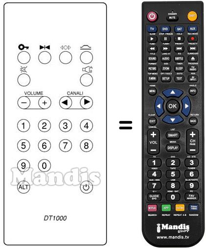 Télécommande qui remplace celle d'origine car elle possède les mêmes fonctions.