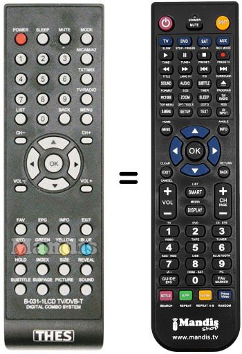 Télécommande qui remplace la télécommande d'origine B-031-1 car elle possède les mêmes fonctions.