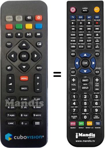 Télécommande qui remplace celle d'origine car elle possède les mêmes fonctions.