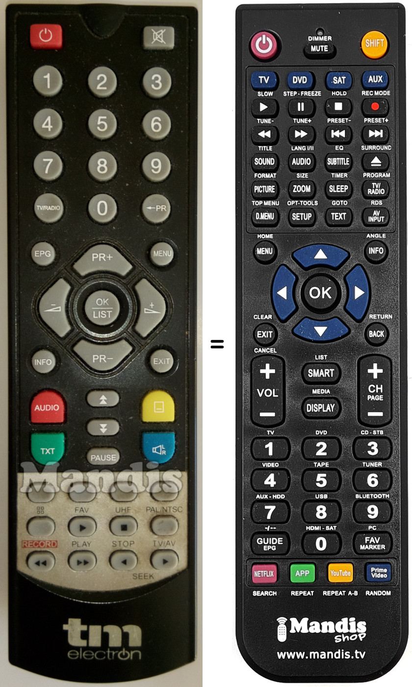 Télécommande qui remplace la télécommande d'origine TM-TDT 1019 car elle possède les mêmes fonctions.