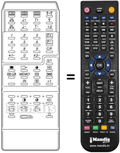 Télécommande qui remplace celle d'origine car elle possède les mêmes fonctions.
