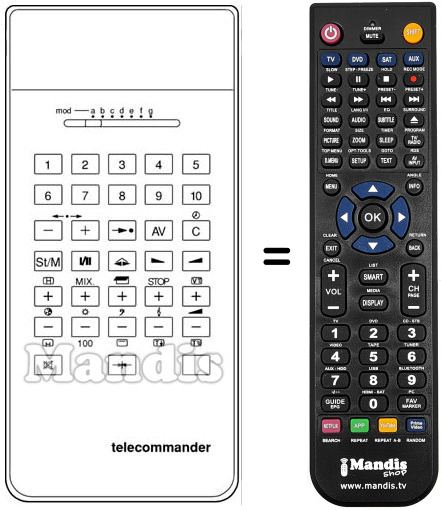 Télécommande qui remplace celle d'origine car elle possède les mêmes fonctions.