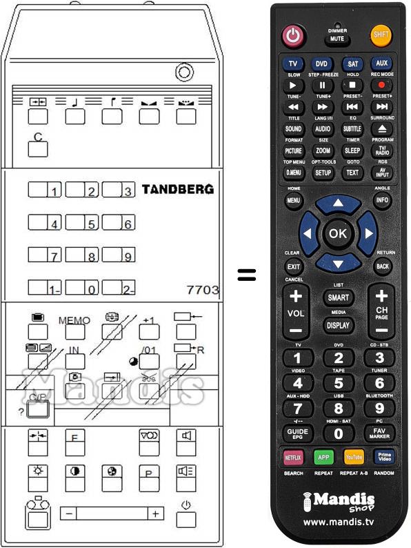 Télécommande qui remplace celle d'origine car elle possède les mêmes fonctions.