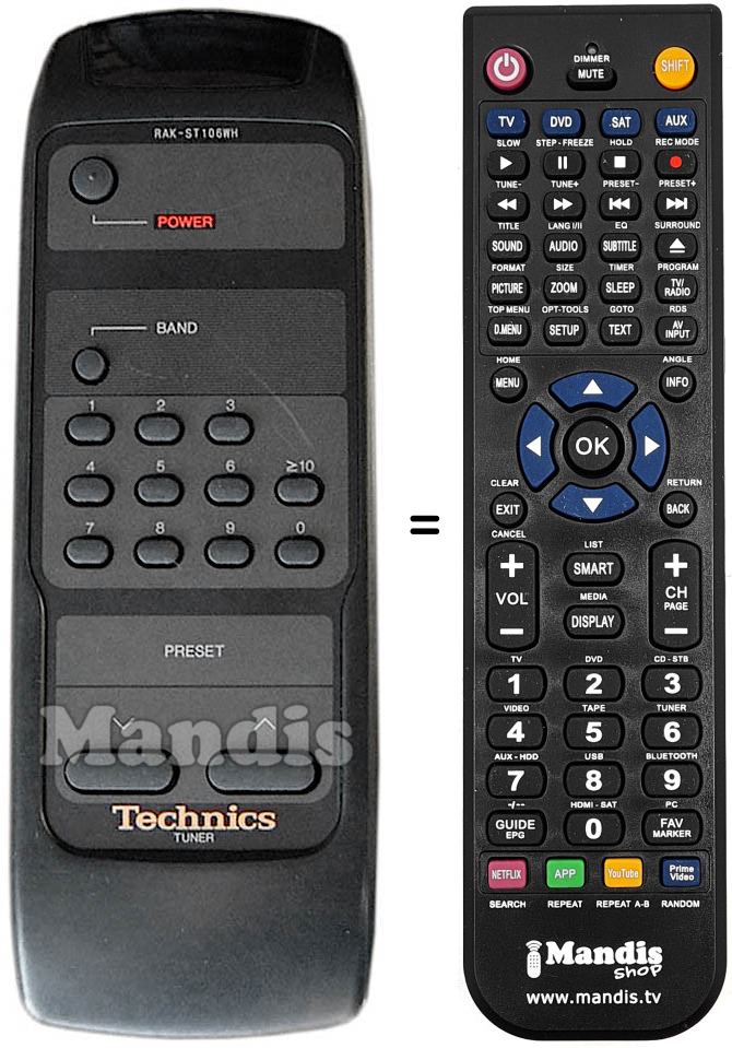 Télécommande qui remplace la télécommande d'origine RAK-ST106WH car elle possède les mêmes fonctions.