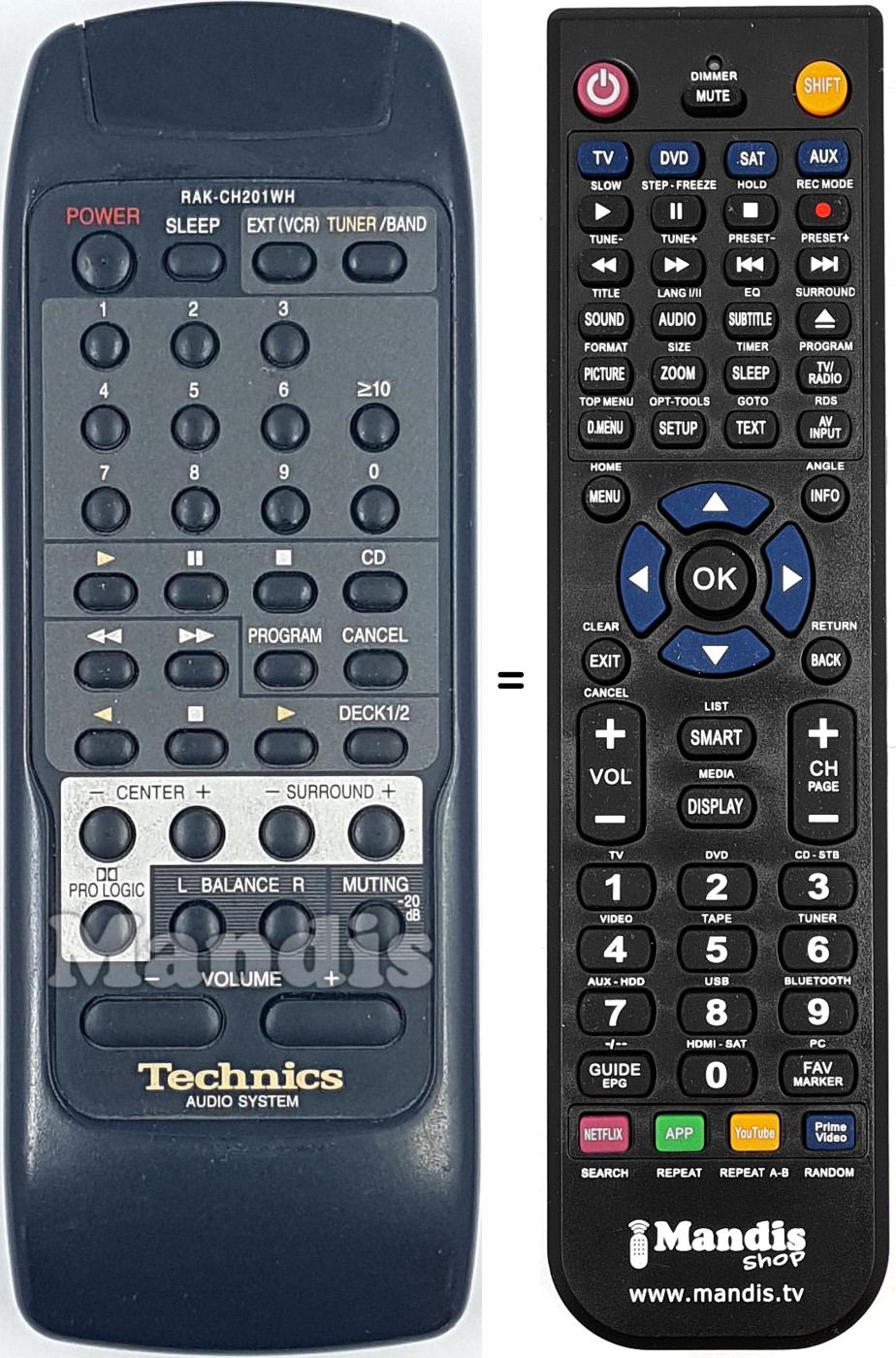 Télécommande qui remplace celle d'origine car elle possède les mêmes fonctions.