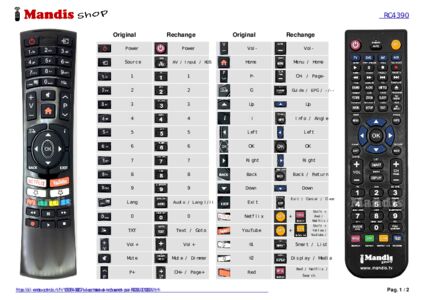 Un document est inclus pour vous aider à utiliser facilement la nouvelle télécommande, en indiquant la correspondance des boutons.